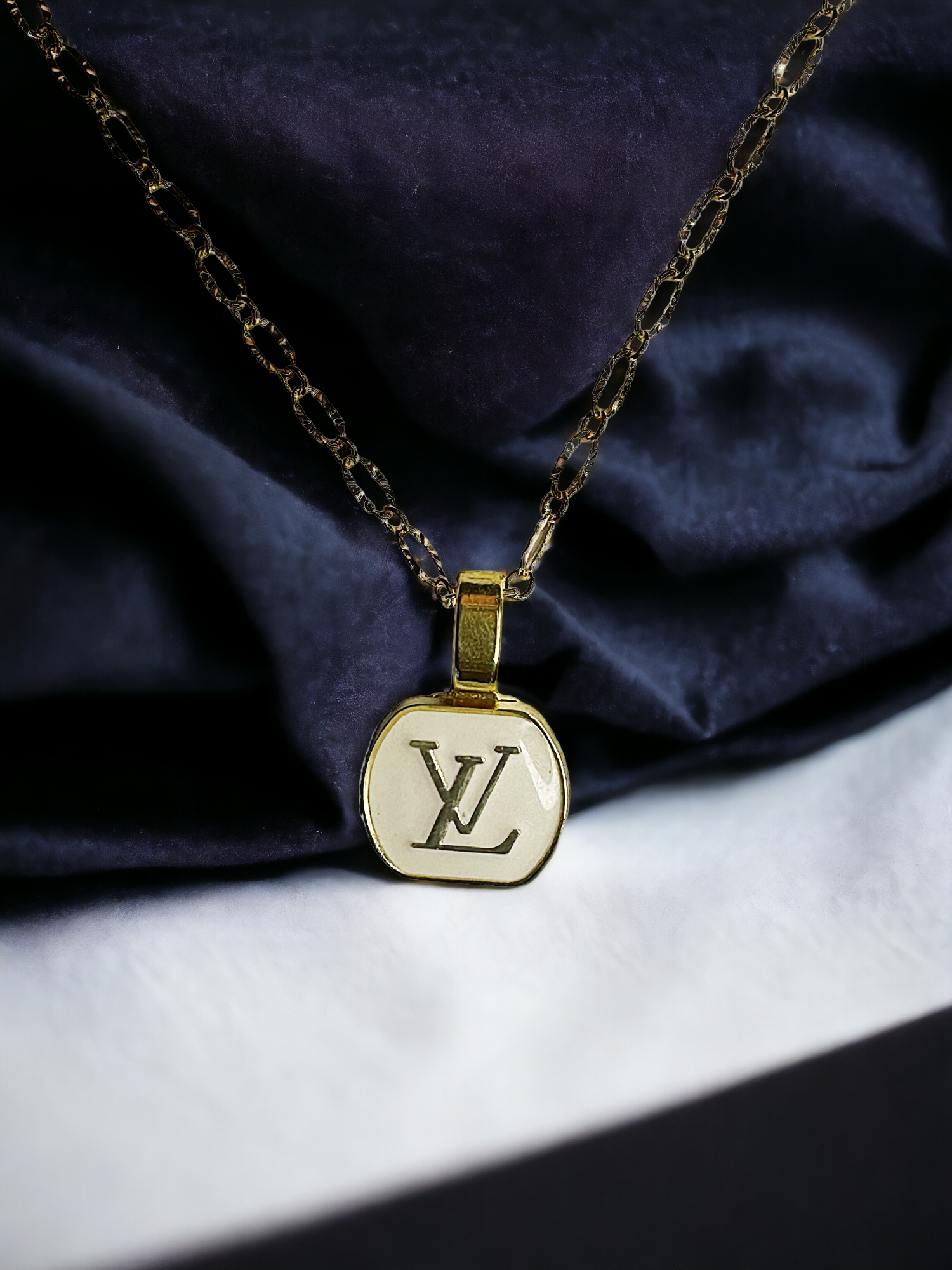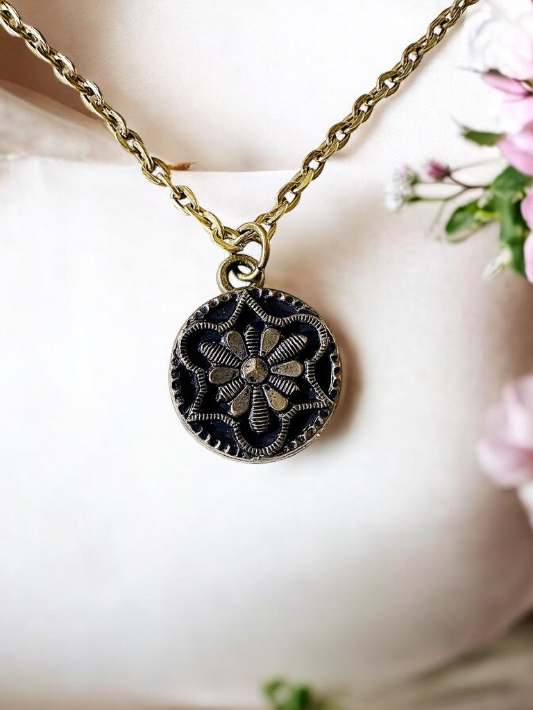 Vintage Designer Up-Cycled Black and White gold filled Button Necklace