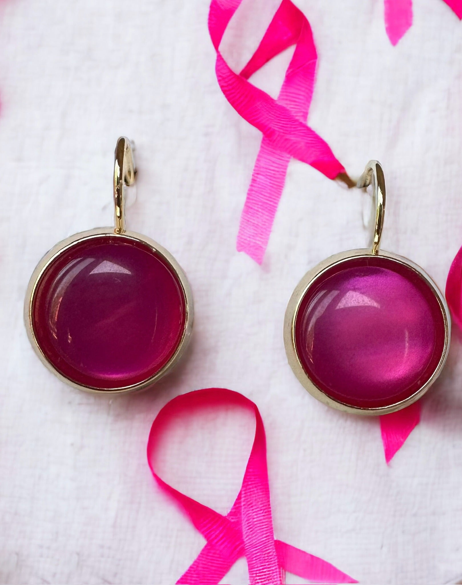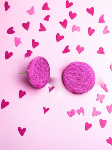 Breast Cancer Awareness Pink Up-cycled Button Drop Earrings