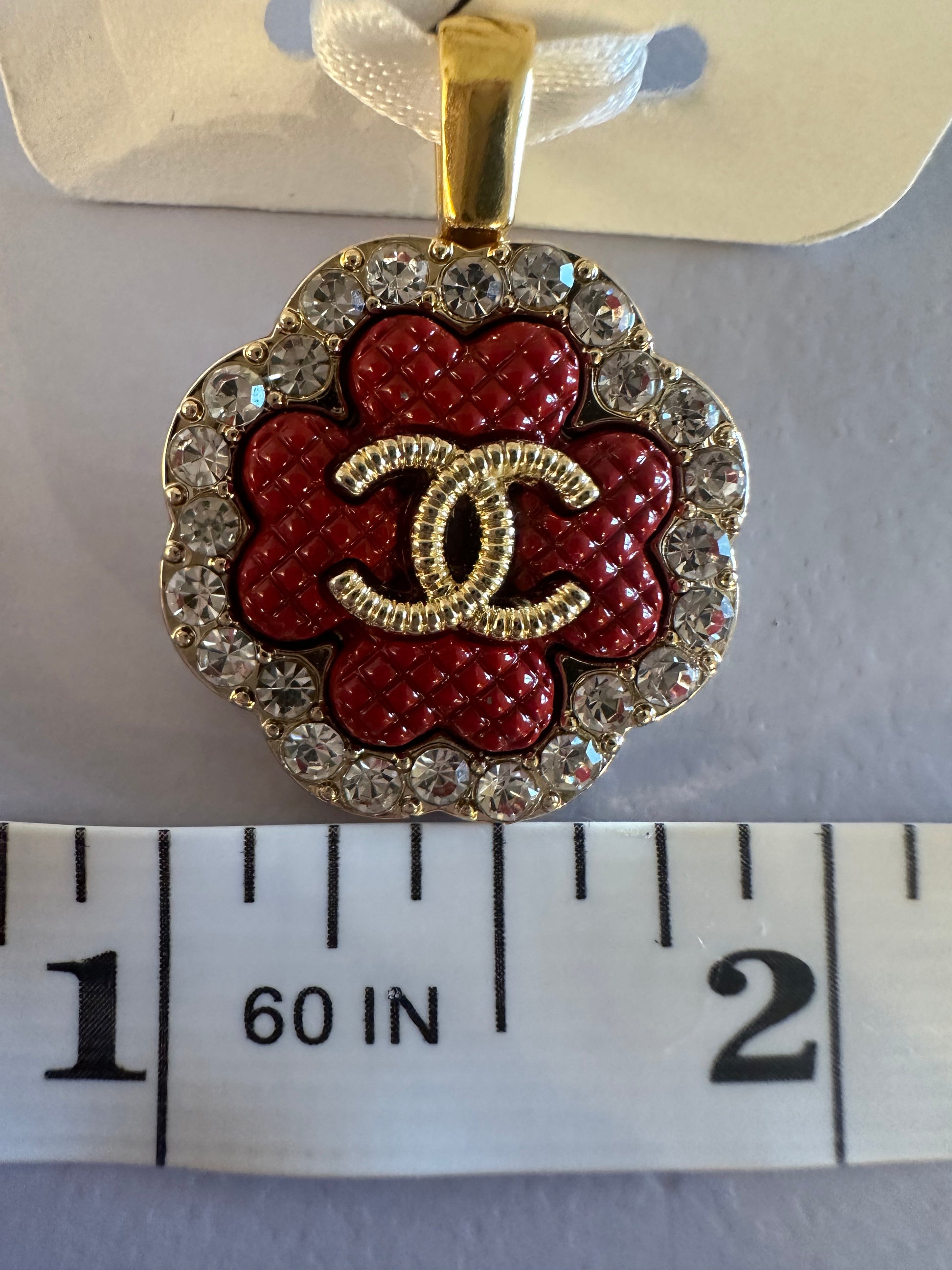 Chanel Rhinestone Red & Gold Button Pendant (with or without chain)
