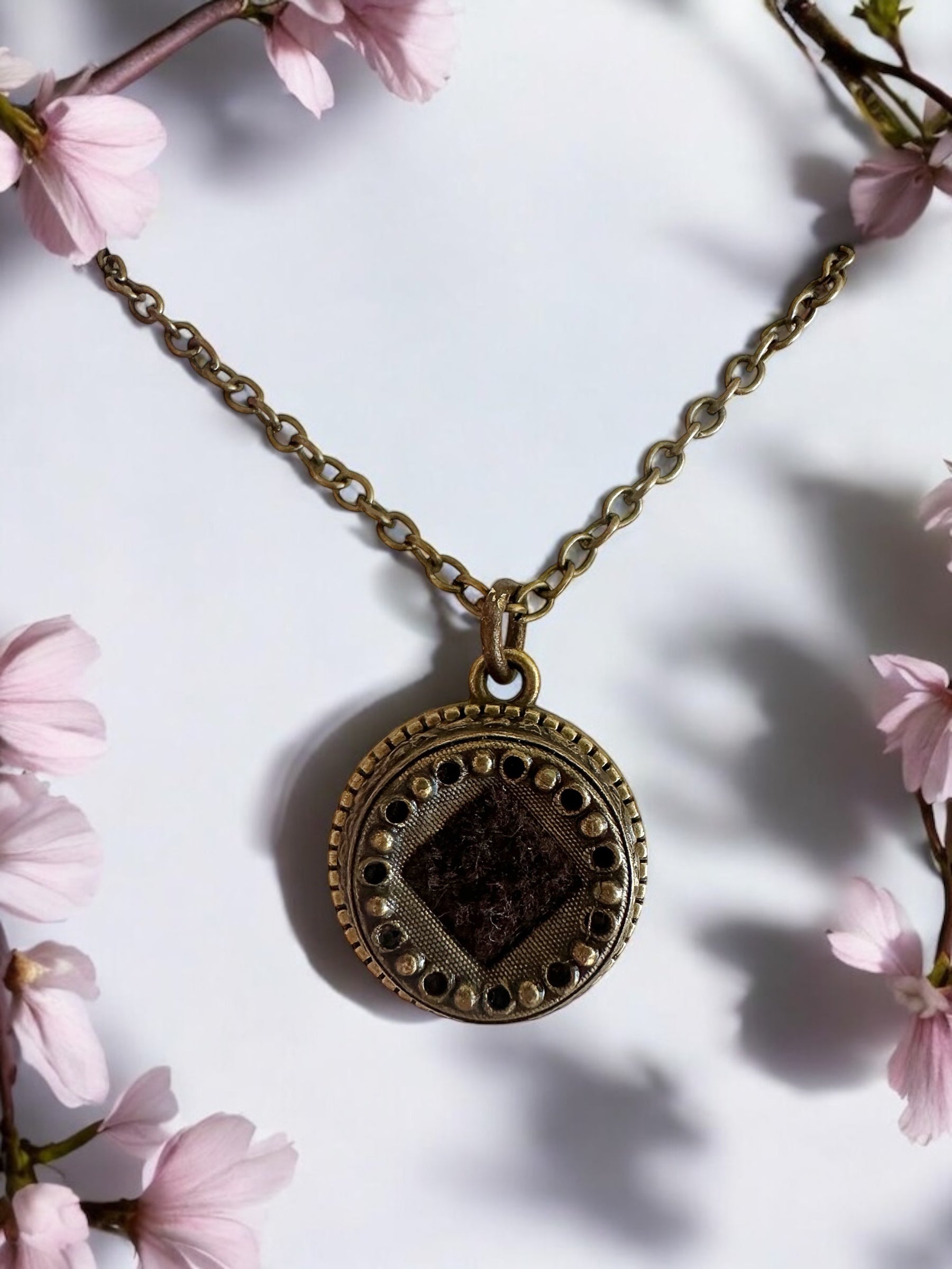 Necklace is adjustable (up to 21 inches) - bronze chain and components. Button is about the size of a penny.