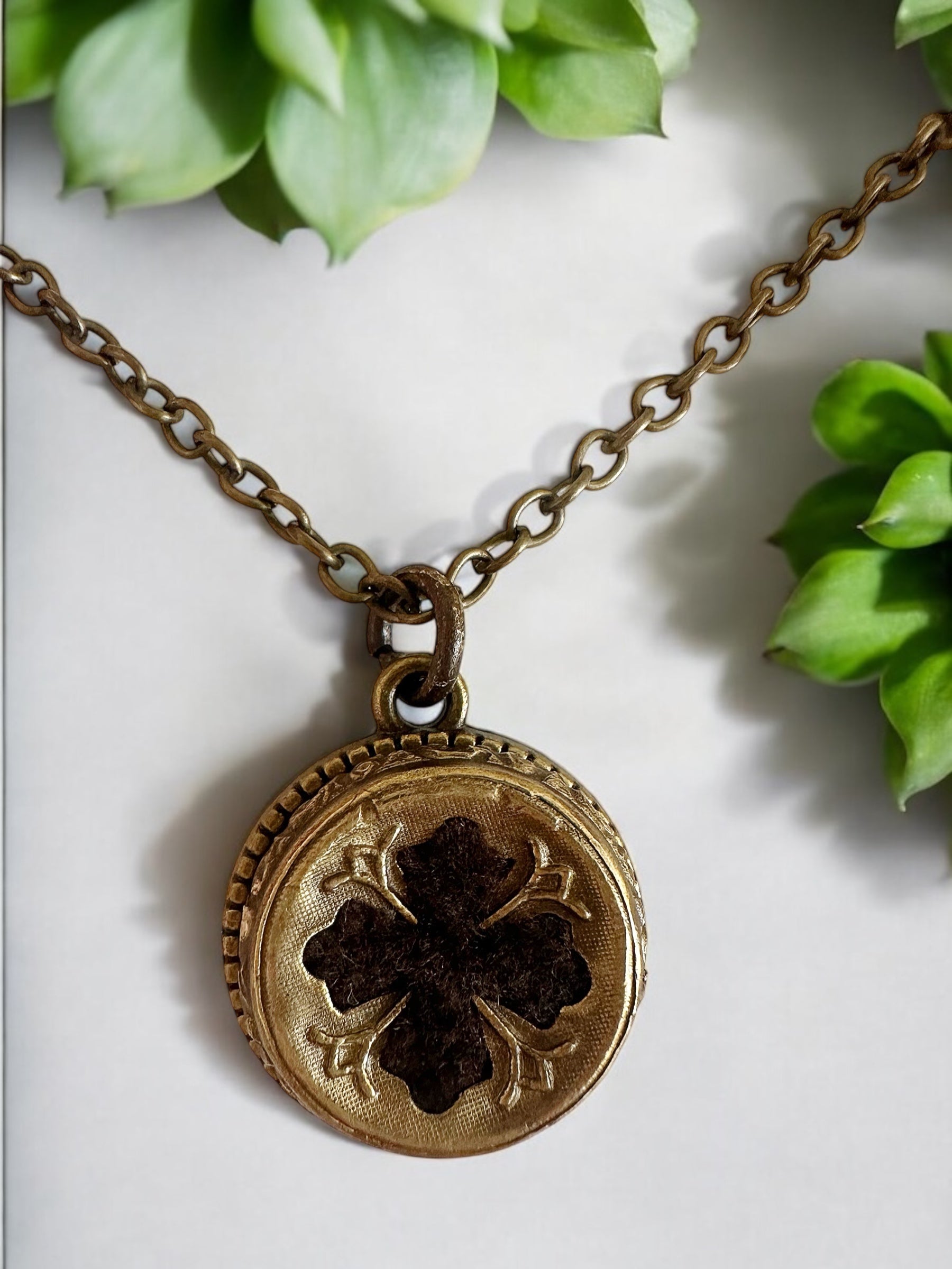 Necklace is adjustable (up to 21 inches) - bronze chain and components. Button is about the size of a penny.