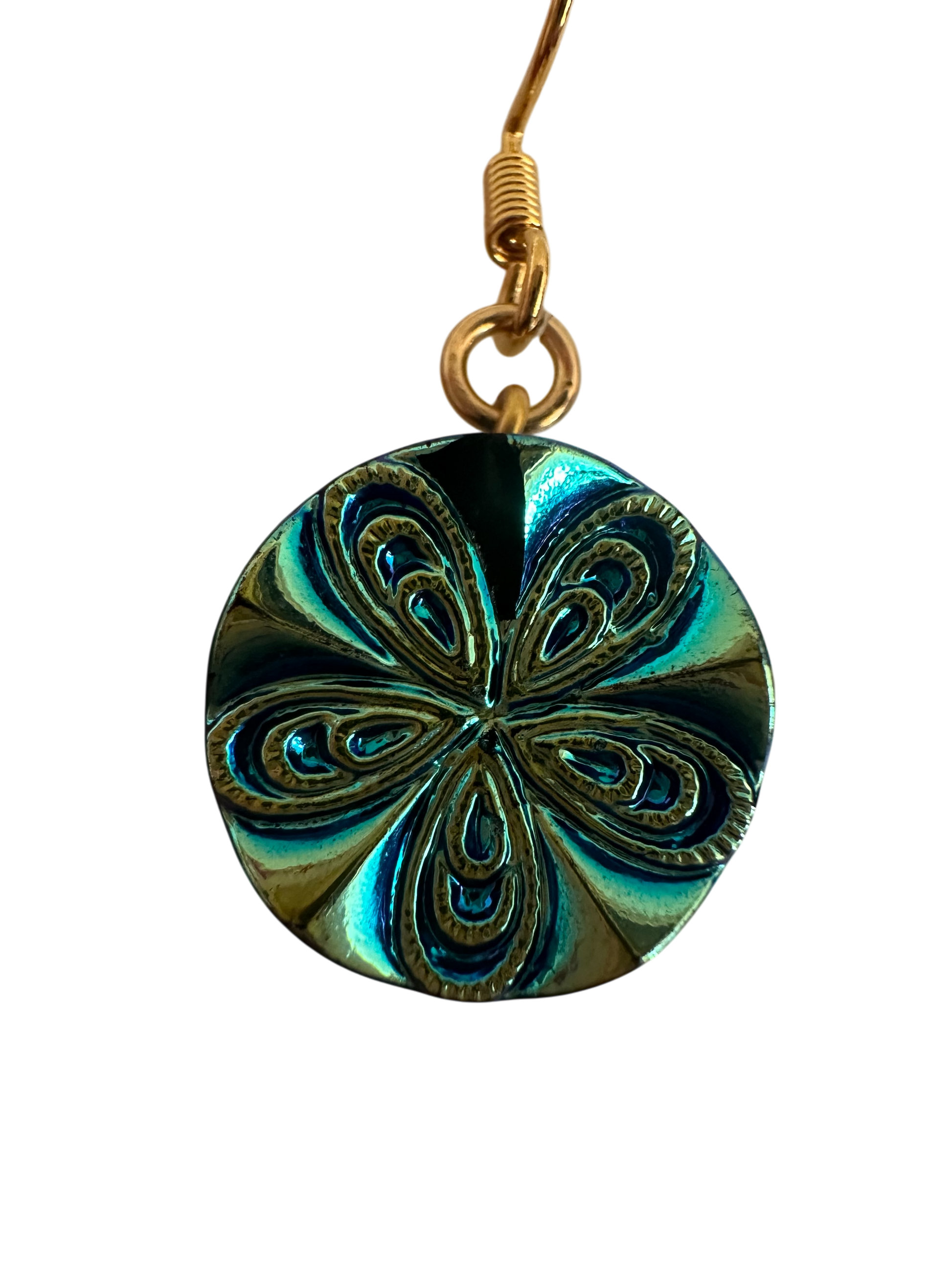 Vintage Pinwheel Iridescent Czech Glass Earrings